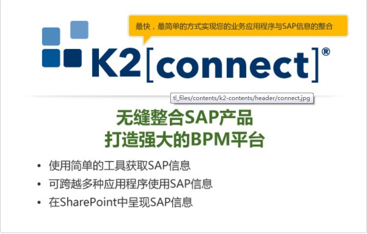此外,作為SAP軟件解決方案合作伙伴的K2是SAP PartnerEdgeTM合作伙伴計(jì)劃的成員。合作伙 伴通過(guò)該計(jì)劃與SAP緊密合作,開(kāi)發(fā)和認(rèn)證其解決方案與于SAP軟件的技術(shù)集成性。集成合作伙伴 應(yīng)用程序?qū)AP解決方案進(jìn)行擴(kuò)展和補(bǔ)充提升其價(jià)值。從而幫助雙方的客戶提供更多成功解決方案滿足企業(yè)需求并獲得成功。